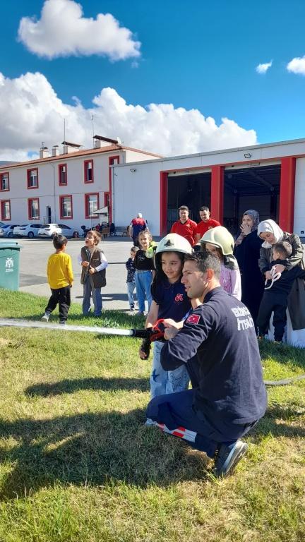 Her yıl 25 Eylül-1 Ekim tarihleri arasında kutlanan Yangından korunma haftası kapsamında İtfaiyecilerle tanışan çocuklar itfaiye aracının nasıl kullanıldığını ve donanımlarının ne işe yaradığını öğrenme fırsatı buldular.